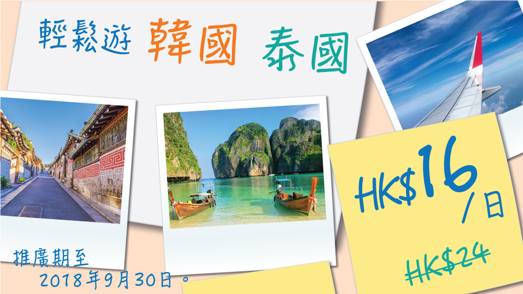 推廣期至2018年9月30日。即刻黎一趟短暫而豐富嘅小旅行吧 !
