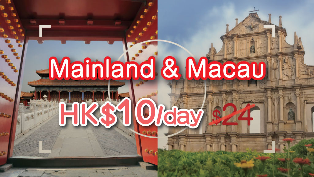 Grab your “Mainland & Macau” day passes at the special price of only HK$10/day – plus you can use one day pass for both places on the same day!