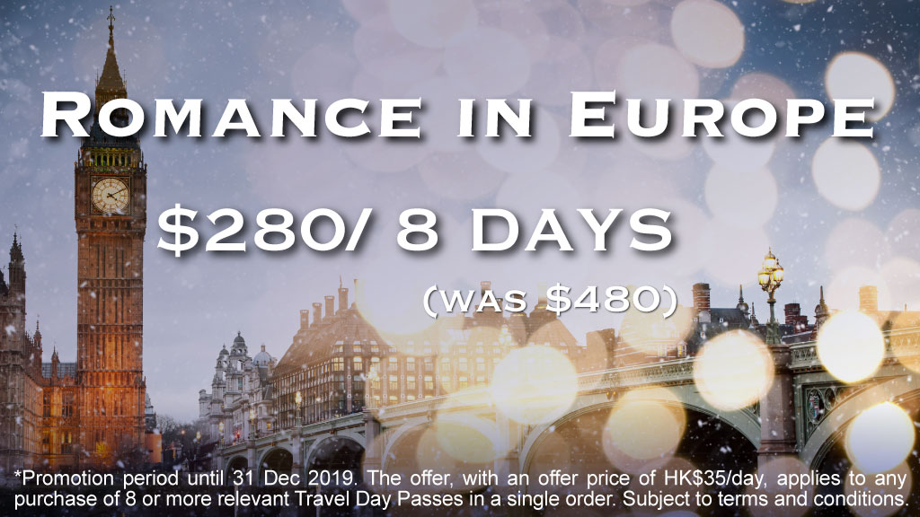 Now Travel Day Passes for Europe are just HK$280/8 days (original price: HK$480). So that’s only HK$35/day when you purchase 8 or more passes at once!!! Grab this offer now and plan your epic journey!