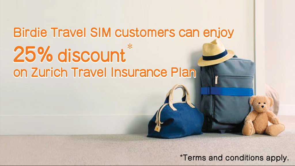 - As from today to 31 Aug 2018 (both days inclusive) (“Promotion Period”), new / existing Birdie customers (including Birdie Mobile and Birdie Travel Sim customers) who successfully purchase Data Roaming Day Passes can enjoy 25% premium discount for Zurich Travel+ Single Trip Insurance. The promotion link will be sent to customers’ registered mobile no. (if available) or email address.
